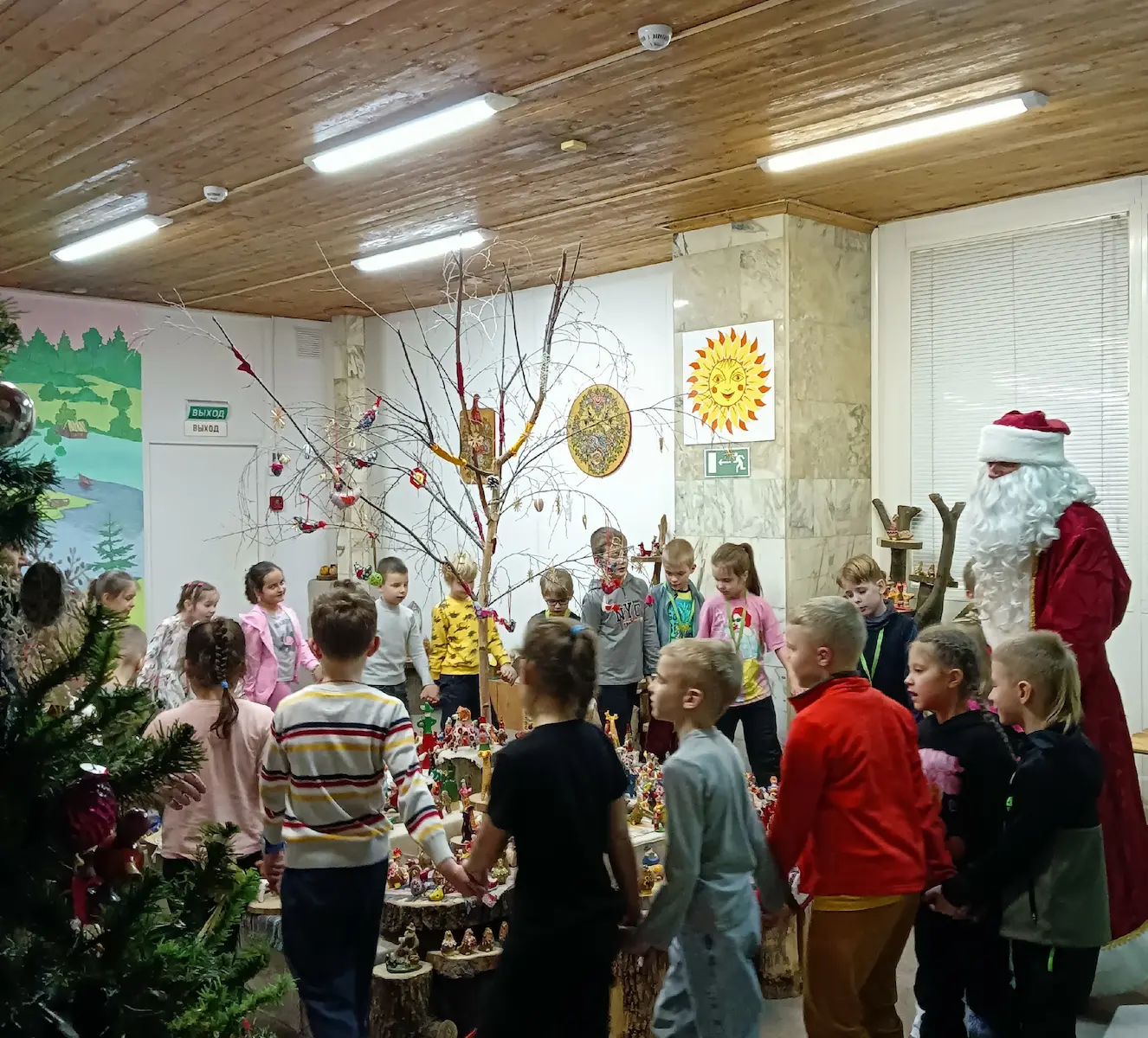 Наши гости увидят множество традиционных игрушек, узнают секреты промыслов, поиграют в народные игры, создадут зимние сказки из игрушек и, конечно, встретятся с Дедом Морозом, узнают много интересного про Новый год и в подарок от Деда Мороза получат настоящую глиняную свистульку, которую распишут морозными узорами.